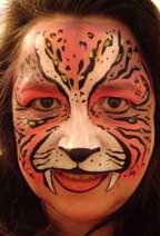 less on one cheek. There is not a lot of detail or use of many colors. Cheek art is suitable for events where there will be many children to paint in a short time frame. However, cheek art can also be very detailed and intricate. With detail comes added time to finish a design.
